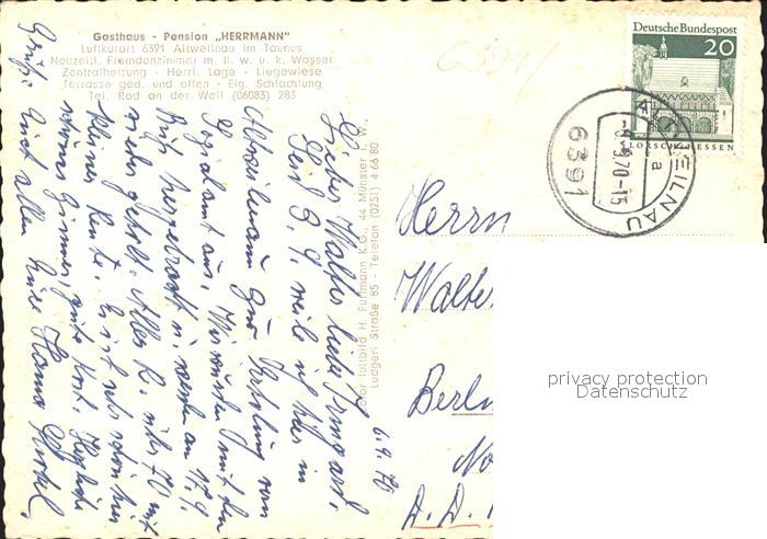 31714771 alte Postkarte Altweilnau Gasthaus Pension Herrmann postalisch gelaufen Erhaltung siehe scans KatCode: 11110006434013