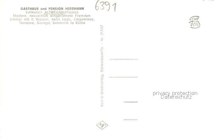 73691913 Altweilnau Gasthaus Pension Herrmann postalisch nicht gelaufen Erhaltung siehe scans [WerneD78] KatCode: 11110006434013