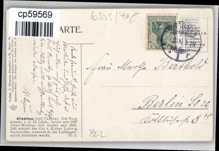 70784084 alte Postkarte Altweilnau Kuenstler G Rothgeb postalisch gelaufen KatCode: 11110006434013
