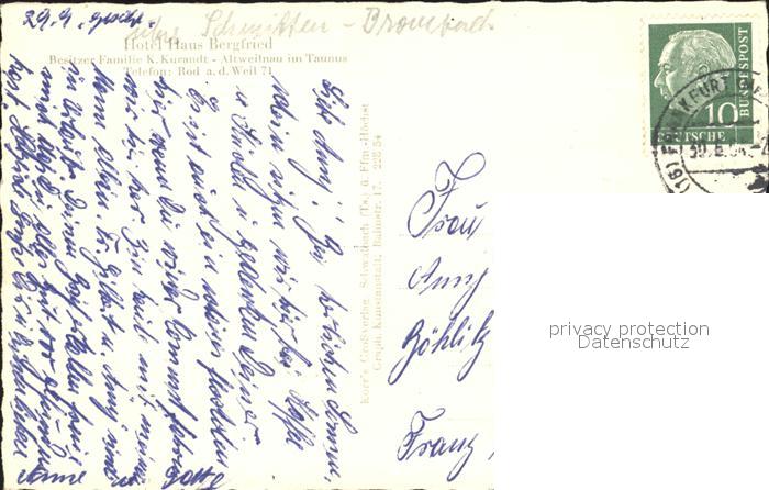 72097060 alte Postkarte Altweilnau mit Hotel Haus Bergfried postalisch gelaufen Erhaltung siehe scans KatCode: 11110006434013
