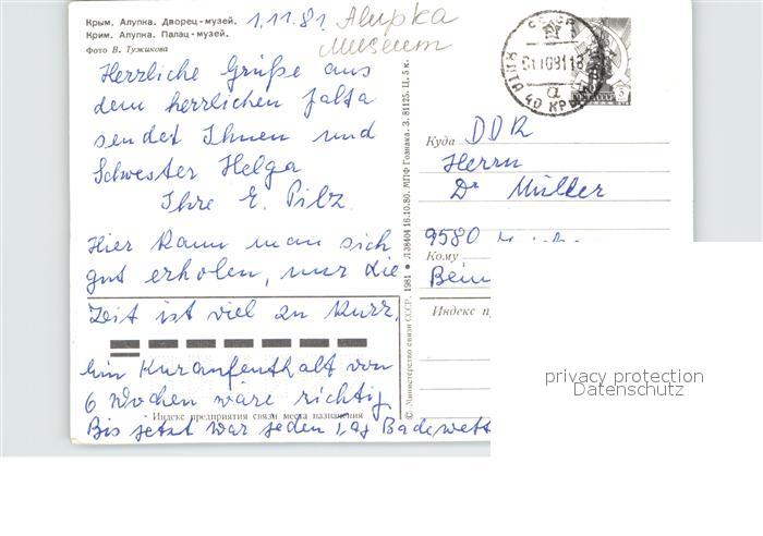 old postcard Alupka Museum Ansicht vom Meer aus Gebirge postalisch gelaufen Erhaltung siehe scans [FriedD77 kt114box]