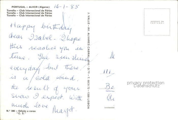old postcard Alvor Torralta Club International de Fèrias postalisch gelaufen Erhaltung siehe scans