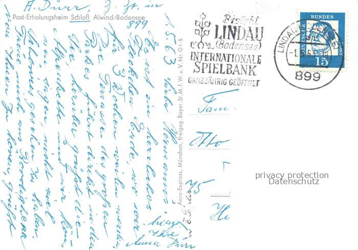 74101657 alte Postkarte Alwind Schloss LINDAU Bodensee Bayern Post Erholungsheim Schloss Fliegeraufnahme postalisch gelaufen Erhaltung siehe scans [WerneD78] KatCode: 11110009776116