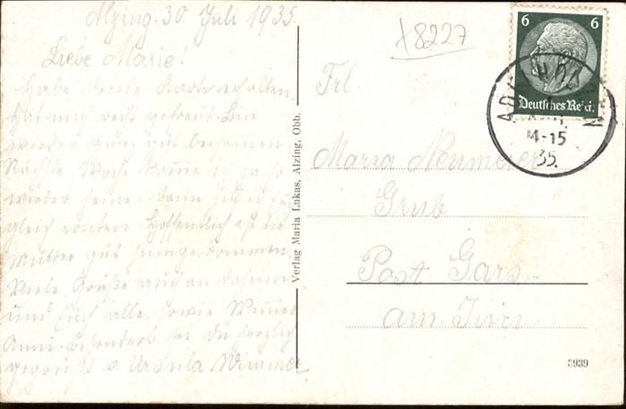 70941230 alte Postkarte Alzing Traunstein Genesungsheim postalisch gelaufen KatCode: 11110009189145
