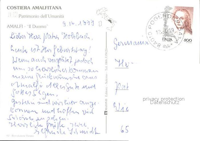 old postcard Amalfi Duomo Dom postalisch gelaufen Erhaltung siehe scans