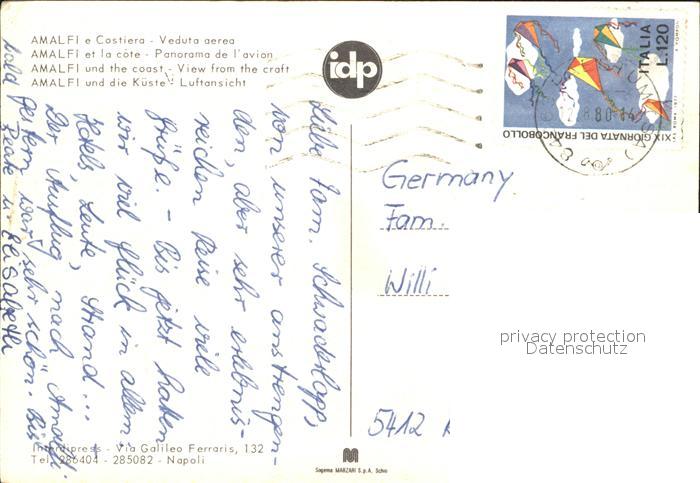 old postcard Amalfi e Costiera veduta aerea postalisch gelaufen Erhaltung siehe scans