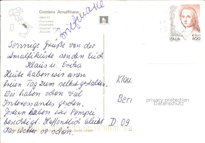 old postcard Amalfi Fliegeraufnahme postalisch gelaufen Erhaltung siehe scans
