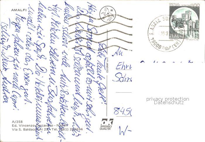 old postcard Amalfi K?ste Burg Nachtaufnahme postalisch gelaufen Erhaltung siehe scans