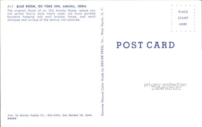 72167181 Amana Blue Room Ox Yoke Inn Restaurant postalisch nicht gelaufen Erhaltung siehe scans KatCode: 14140170000000