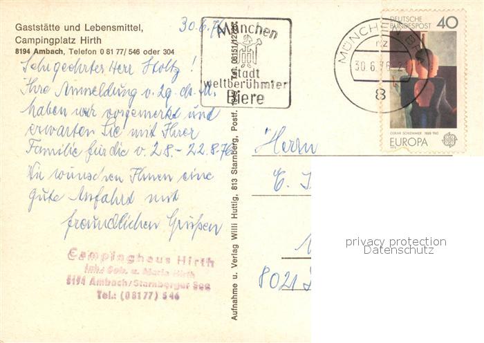 73204340 alte Postkarte Ambach Starnbergersee Campingplatz Hirth Gaststaette Segeln postalisch gelaufen Erhaltung siehe scans [FriedD77] KatCode: 11110009188139