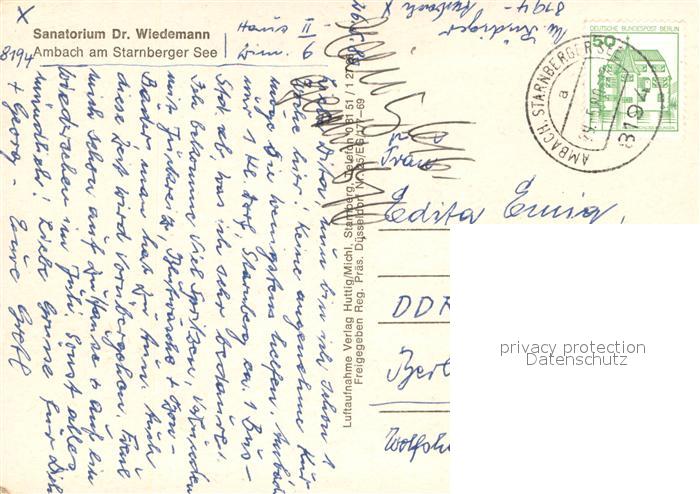 73650518 alte Postkarte Ambach Starnbergersee Sanatorium Dr Wiedemann Fliegeraufnahme postalisch gelaufen Erhaltung siehe scans [WerneD78] KatCode: 11110009188139
