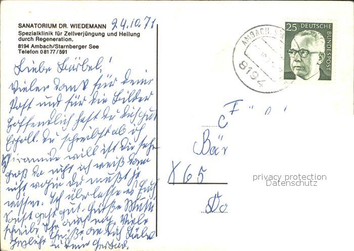 72558755 alte Postkarte Ambach Starnbergersee Sanatorium Dr. Wiedemann Spezialklinik postalisch gelaufen Erhaltung siehe scans [AntonD74] KatCode: 11110009188139
