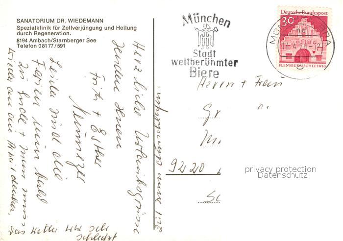 72949561 alte Postkarte Ambach Starnbergersee Sanatorium Dr. Wiedemann postalisch gelaufen Erhaltung siehe scans [NatalD47] KatCode: 11110009188139