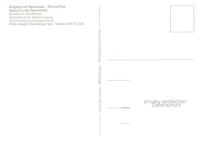 73651496 Ambach Starnbergersee Sanatorium Wiedemann Aufgang zum Speisesaal Riviera Park Galerie zu den Appartments postalisch nicht gelaufen Erhaltung siehe scans [FriedD77] KatCode: 11110009188139
