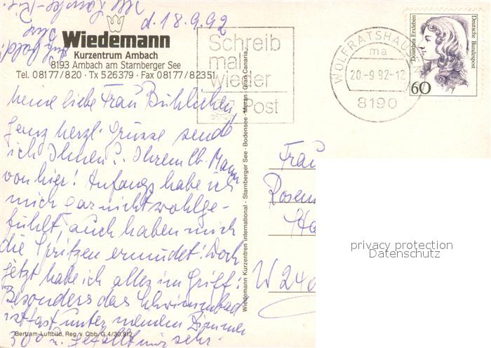 73629286 alte Postkarte Ambach Starnbergersee Wiedemann Kurzentrum Fliegeraufnahme postalisch gelaufen Erhaltung siehe scans [FriedD77] KatCode: 11110009188139