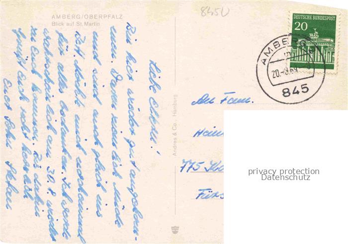 74049453 alte Postkarte Amberg Oberpfalz Blick auf St. Martin Kirche Stadtmauer postalisch gelaufen Erhaltung siehe scans [FriedD77] KatCode: 11110009361000