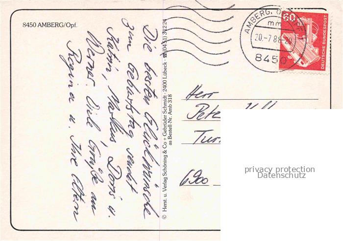 74049445 alte Postkarte Amberg Oberpfalz Blick zur Kirche Motive Stadtzentrum Sehenswuerdigkeiten postalisch gelaufen Erhaltung siehe scans [FriedD77] KatCode: 11110009361000