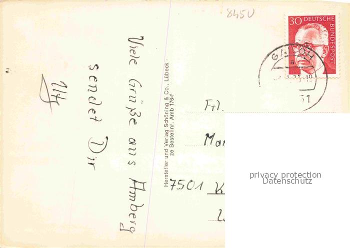74049450 alte Postkarte Amberg Oberpfalz Motive Stadtzentrum postalisch gelaufen Erhaltung siehe scans [FriedD77] KatCode: 11110009361000