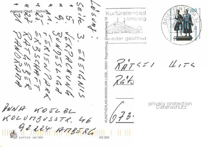 72819137 alte Postkarte Amberg Oberpfalz Rathaus Maibaum postalisch gelaufen Erhaltung siehe scans [FriedD77] KatCode: 11110009361000