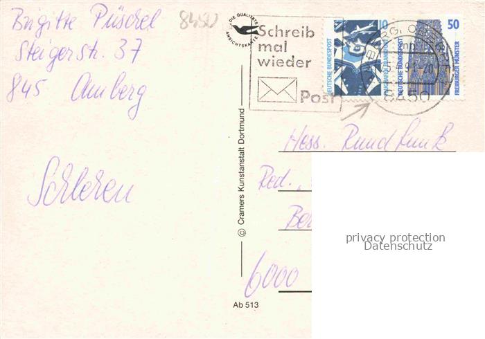 74049462 alte Postkarte Amberg Oberpfalz Rathaus Mariahilfberg Bahnhof Eh’haeusl Vilstor Stadtbrille postalisch gelaufen Erhaltung siehe scans [FriedD77] KatCode: 11110009361000