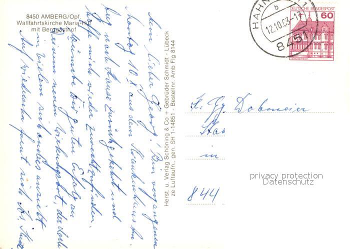 73010268 alte Postkarte Amberg Oberpfalz Wallfahrtskirche Maria Hilf mit Berggasthof postalisch gelaufen Erhaltung siehe scans [WerneD78] KatCode: 11110009361000