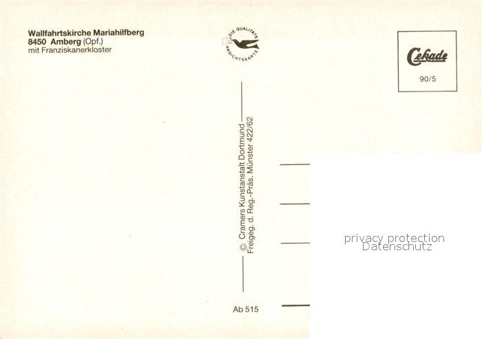 73744866 Amberg Oberpfalz Wallfahrtskirche Mariahilfberg Fliegeraufnahme postalisch nicht gelaufen Erhaltung siehe scans [FriedD77] KatCode: 11110009361000