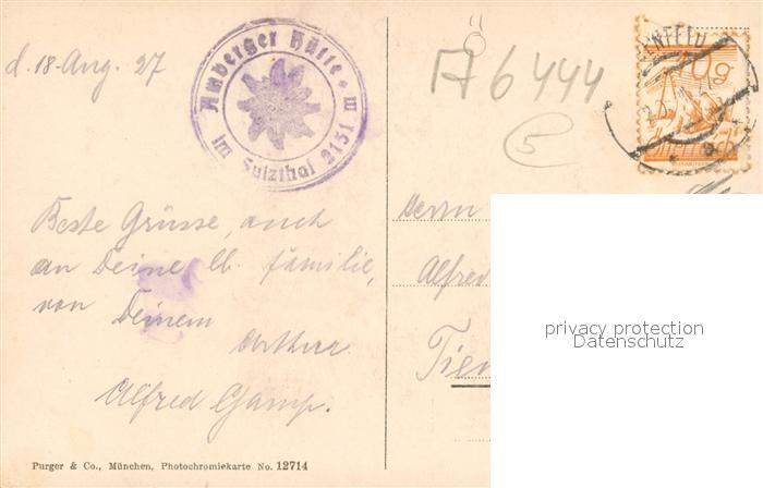 43107520 alte Postkarte Ambergerhuette Berghaus Sulztal Gebirgspanorama postalisch gelaufen Erhaltung siehe scans [FriedD77] KatCode: 11390334070208