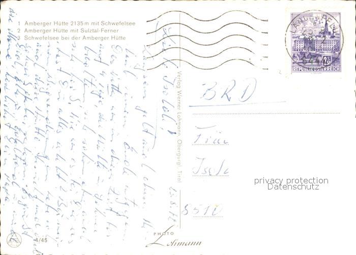 72181124 alte Postkarte Ambergerhuette Schwefelsee Sulztal Ferner postalisch gelaufen Erhaltung siehe scans KatCode: 11390334070208