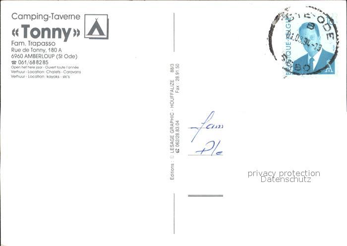 72002082 carte postale Amberloup Camping Taverne Tonny postalisch gelaufen Erhaltung siehe scans KatCode: 11070082009536