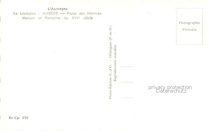13526349 Ambert Place des Minimes postalisch nicht gelaufen Erhaltung siehe scans [LiesaD40] KatCode: 11170063163003