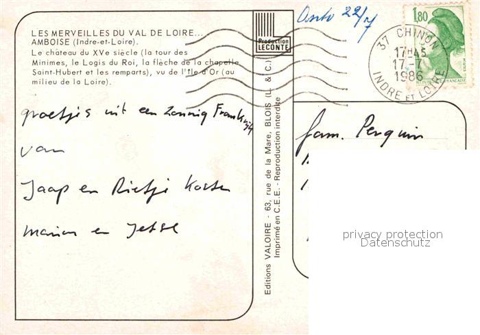 12856216 carte postale Amboise Chateau postalisch gelaufen Erhaltung siehe scans [NatalD47] KatCode: 11170037237003