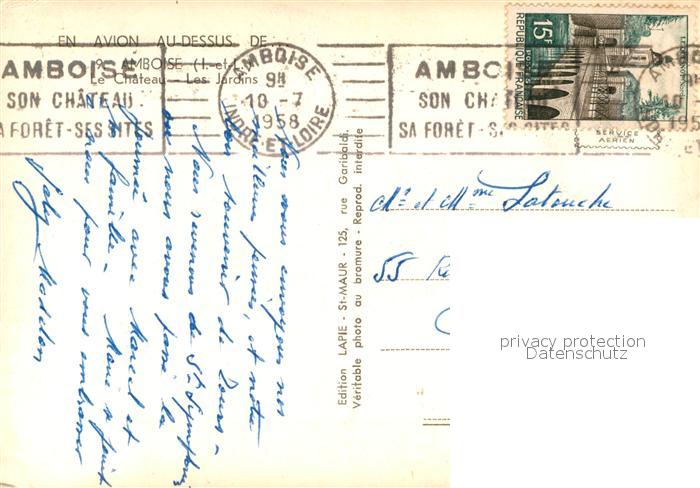 13586333 Amboise Chateau Jardins vue aérienne postalisch gelaufen Erhaltung siehe scans [FriedD77] carte postale Frie Katcode 11170037237003