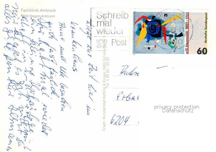 72905827 alte Postkarte Ambrock Hagen Fachklinik Fliegeraufnahme postalisch gelaufen Erhaltung siehe scans [FriedD77] KatCode: 11110005914000
