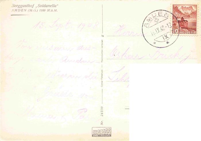 13975727 Amden Walensee SG Berggasthof Soldanella postalisch gelaufen Erhaltung siehe scans [FriedD77] alte Postkarte Frie Katcode 11470190570684