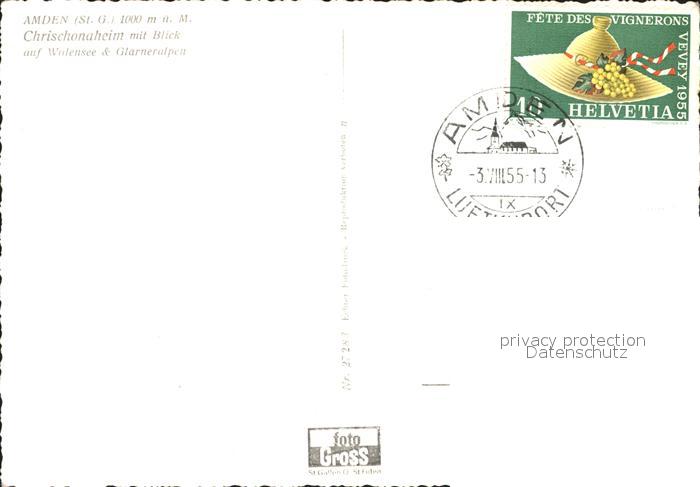 11632659 Amden Walensee SG Chrischonaheim mit Walensee und Glarneralpen postalisch gelaufen Erhaltung siehe scans Alte Ansichtskarte Postkarte alte Postkarte hz_W Katcode 11470190570684