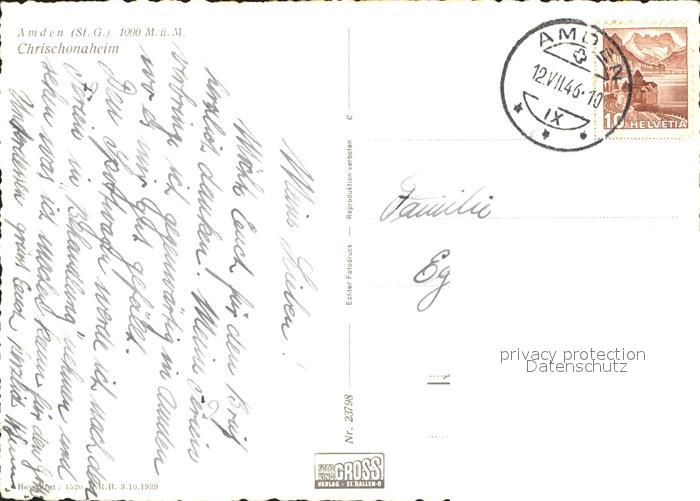 11646149 Amden Walensee SG Chrischonaheim postalisch gelaufen Alte Ansichtskarte Postkarte alte Postkarte hz_F Katcode 11470190570684