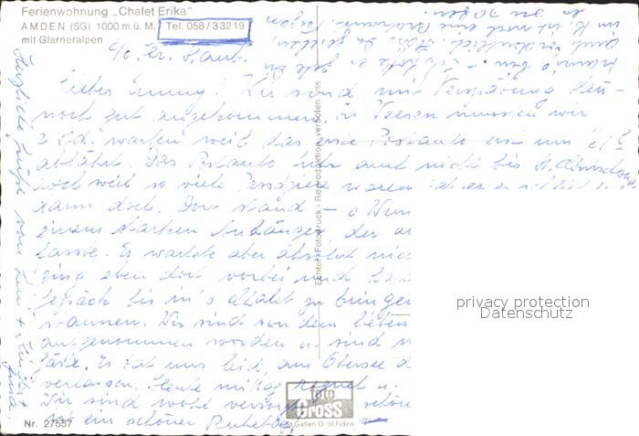 11646150 Amden Walensee SG Ferienwohnung Chalet Erika Walensee Glarner Alpen postalisch nicht gelaufen Erhaltung siehe scans Alte Ansichtskarte Postkarte hz_F Katcode 11470190570684