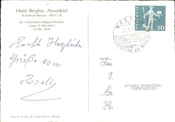 11646128 Amden Walensee SG Hotel Berghus Arvenbueel Terrasse postalisch gelaufen Erhaltung siehe scans Alte Ansichtskarte Postkarte alte Postkarte hz_F Katcode 11470190570684