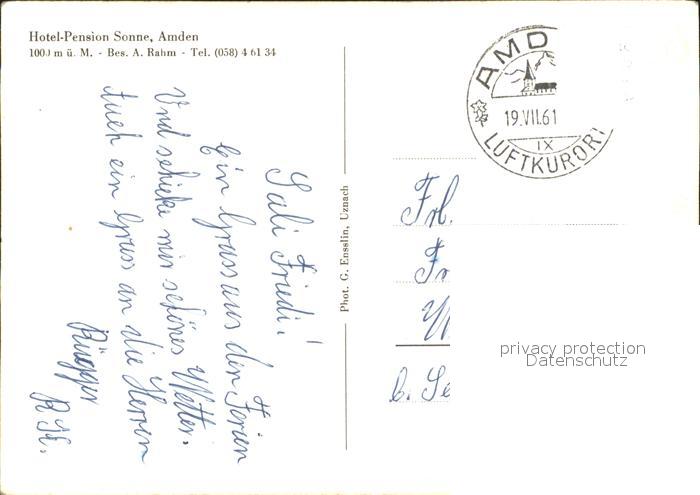 11646330 Amden Walensee SG Hotel Pension Sonne postalisch gelaufen Erhaltung siehe scans Alte Ansichtskarte Postkarte alte Postkarte hz_F Katcode 11470190570684