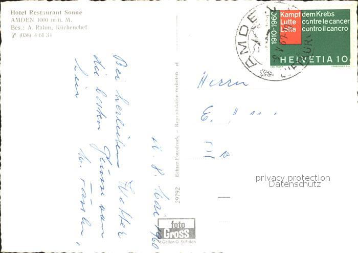 11629771 Amden Walensee SG Hotel Restaurant Sonne Kirche Alpenpanorama postalisch gelaufen Erhaltung siehe scans Alte Ansichtskarte Postkarte alte Postkarte hz_F Katcode 11470190570684