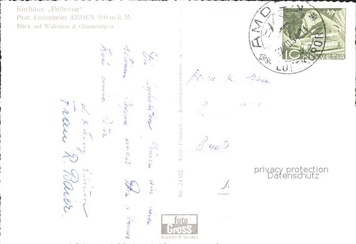 11629760 Amden Walensee SG Kurhaus Bellevue Blick auf Walensee und Glarner Alpen postalisch gelaufen Erhaltung siehe scans Alte Ansichtskarte Postkarte alte Postkarte hz_F Katcode 11470190570684
