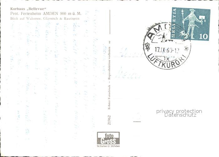 11646153 Amden Walensee SG Kurhaus Bellevue Ferienheim Walensee Alpenpanorama postalisch gelaufen Erhaltung siehe scans Alte Ansichtskarte Postkarte alte Postkarte hz_F Katcode 11470190570684