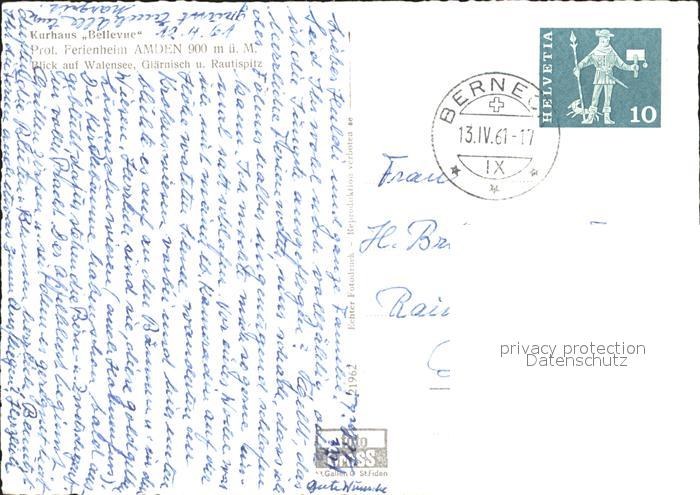 11632657 Amden Walensee SG Kurhaus Bellevue Prot Ferienheim postalisch gelaufen Erhaltung siehe scans Alte Ansichtskarte Postkarte alte Postkarte hz_W Katcode 11470190570684
