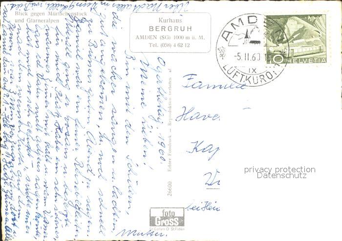 11646129 Amden Walensee SG Kurhaus Bergruh Blick gegen Muertschenstock und Glarneralpen postalisch gelaufen Alte Ansichtskarte Postkarte alte Postkarte hz_F Katcode 11470190570684