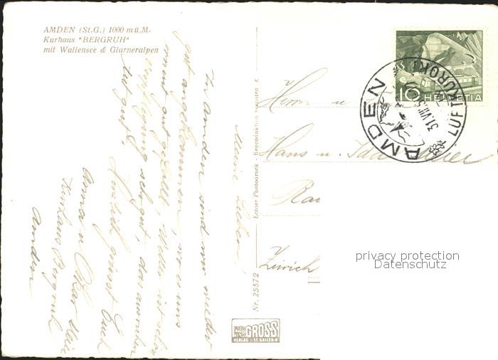 11646324 Amden Walensee SG Kurhaus Bergruh mit Walensee und Glarneralpen Alpenpanorama postalisch gelaufen Erhaltung siehe scans Alte Ansichtskarte Postkarte alte Postkarte hz_F Katcode 11470190570684