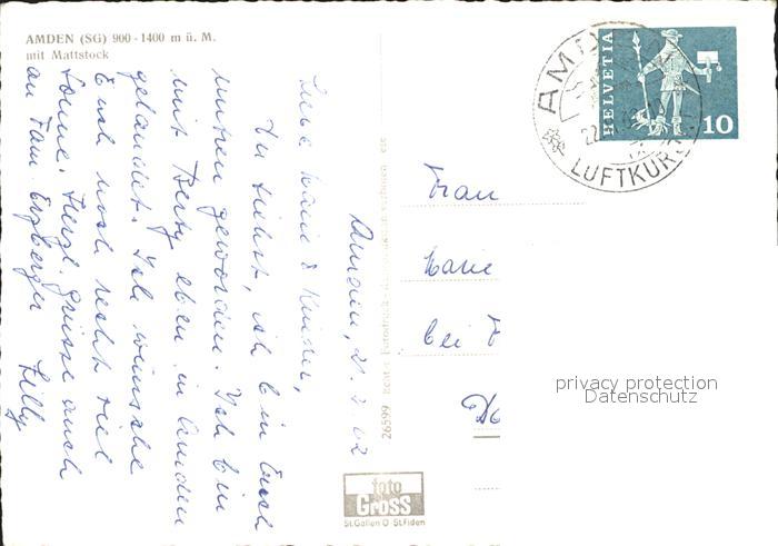 11632711 Amden Walensee SG mit Mattstock postalisch gelaufen Erhaltung siehe scans Alte Ansichtskarte Postkarte alte Postkarte hz_W Katcode 11470190570684