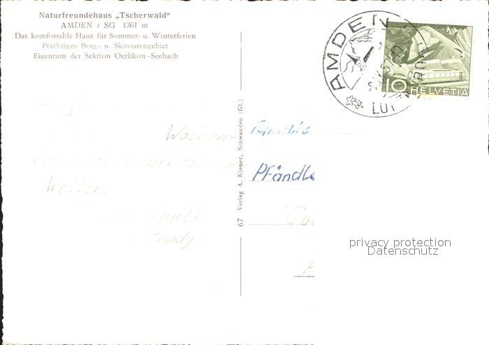 11646148 Amden Walensee SG Naturfreundehaus Tscherwald postalisch gelaufen Erhaltung siehe scans Alte Ansichtskarte Postkarte alte Postkarte hz_F Katcode 11470190570684