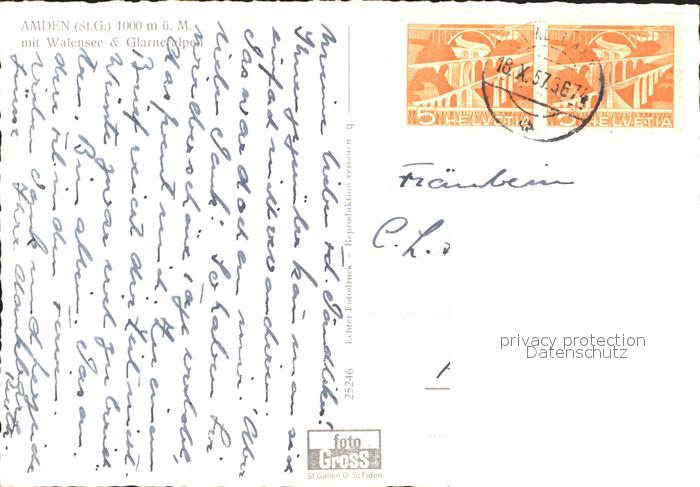 11646143 Amden Walensee SG Ortsansicht mit Kirche Walensee Glarneralpen postalisch gelaufen Erhaltung siehe scans Alte Ansichtskarte Postkarte alte Postkarte hz_F Katcode 11470190570684