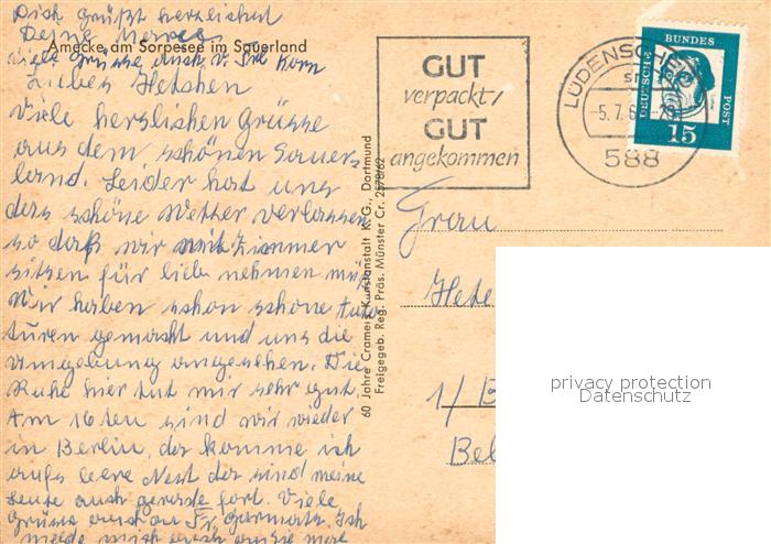 73663702 alte Postkarte Amecke Fliegeraufnahme am Sorpesee postalisch gelaufen Erhaltung siehe scans [LiesaD40] KatCode: 11110005958044
