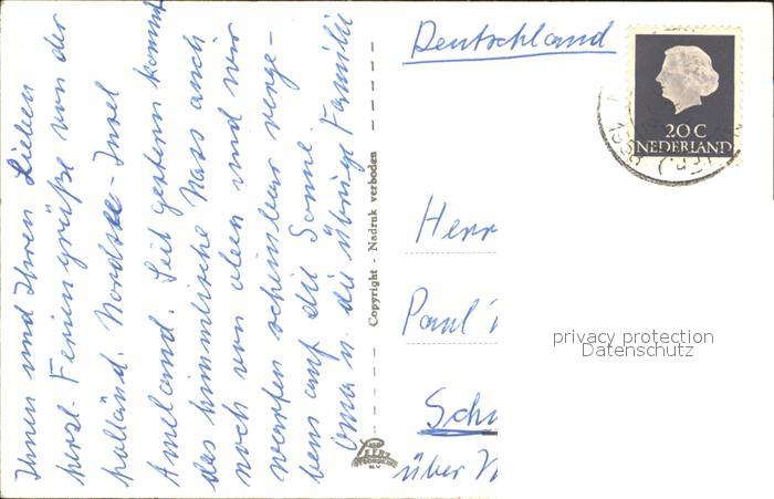 old postcard Ameland Inselblick Leuchtturm Kirche Dampfer Zeichnung postalisch gelaufen Erhaltung siehe scans